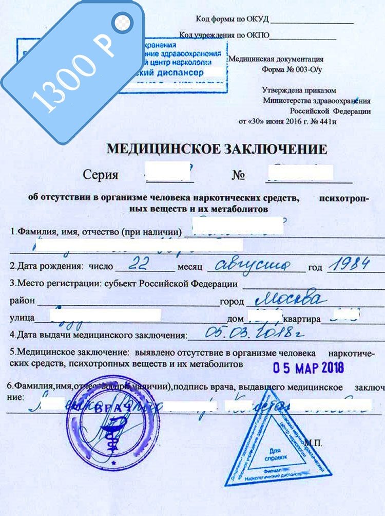 Купить справку 003 оу в Москве без прохождения врачей с доставкой