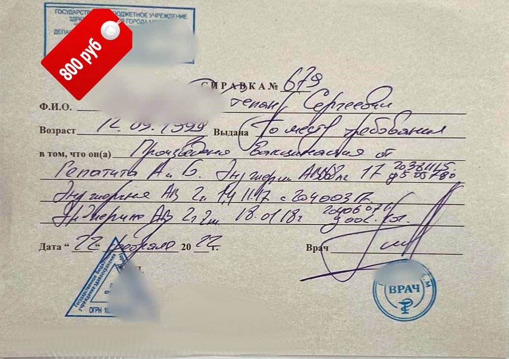 Наши цены вас приятно удивят. А в совокупности с сэкономленным временем, сложно недооценить преимущества нашего сервиса. Выбирайте купить справку о прививке от гепатита в Москве быстро и по выгодной цене. Звоните прямо сейчас и не беспокойтесь о конфиденциальности. Мы гарантируем сохранение информации в тайне.