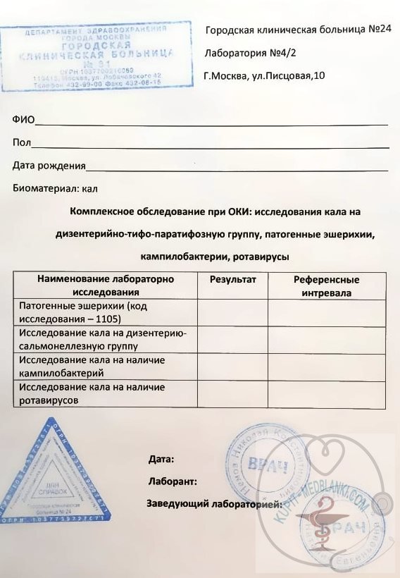 Купить анализ кала на кишечную группу в Москве для госпитализации