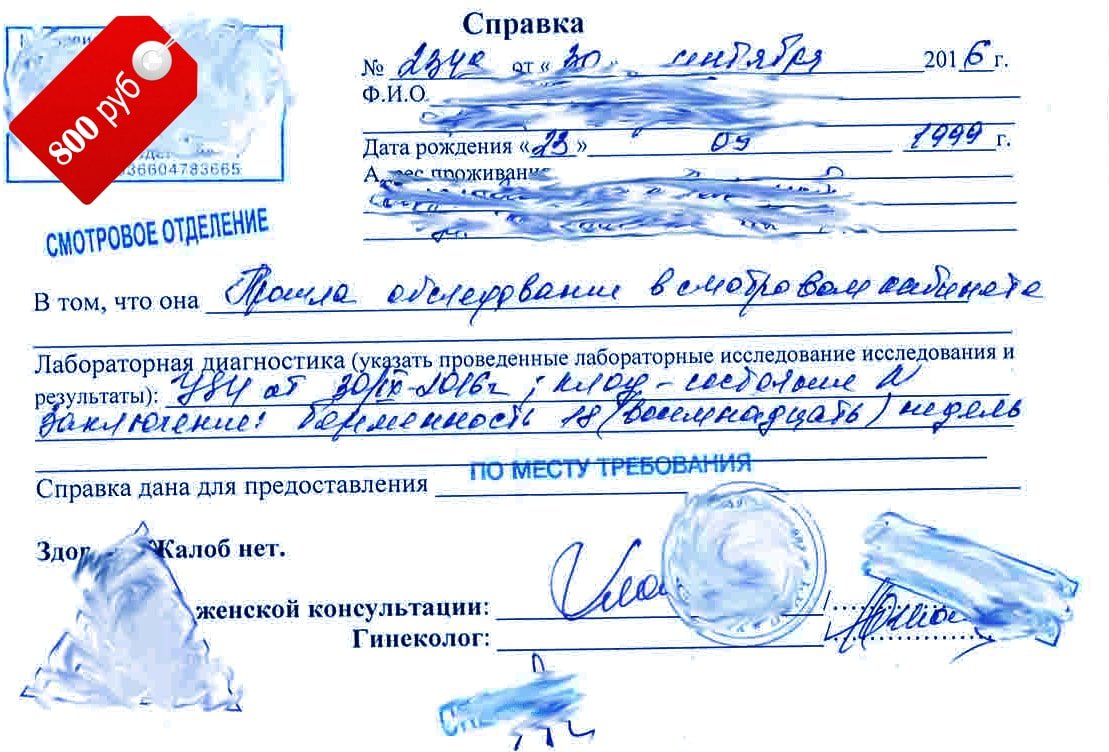 Недорого купить справку из кабинета женской консультации в Москве