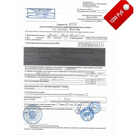 Поэтому мы предлагаем купить справку 070/у-04 для получения путевки быстро и недорого. Это позволит оперативно собрать пакет требующихся документов и значительно сэкономить при покупке путевки.